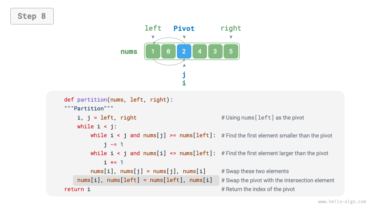 int pivot = partition(nums, left, right);